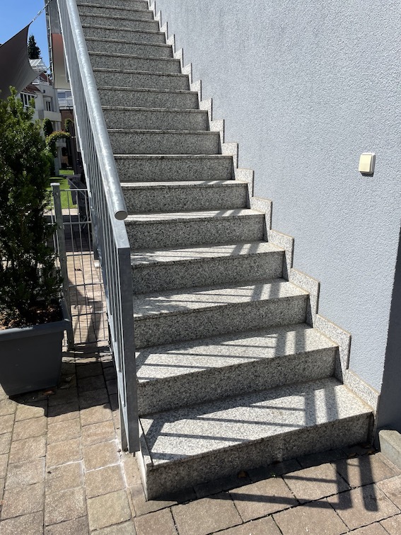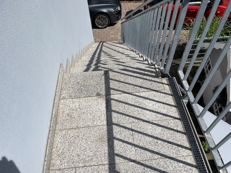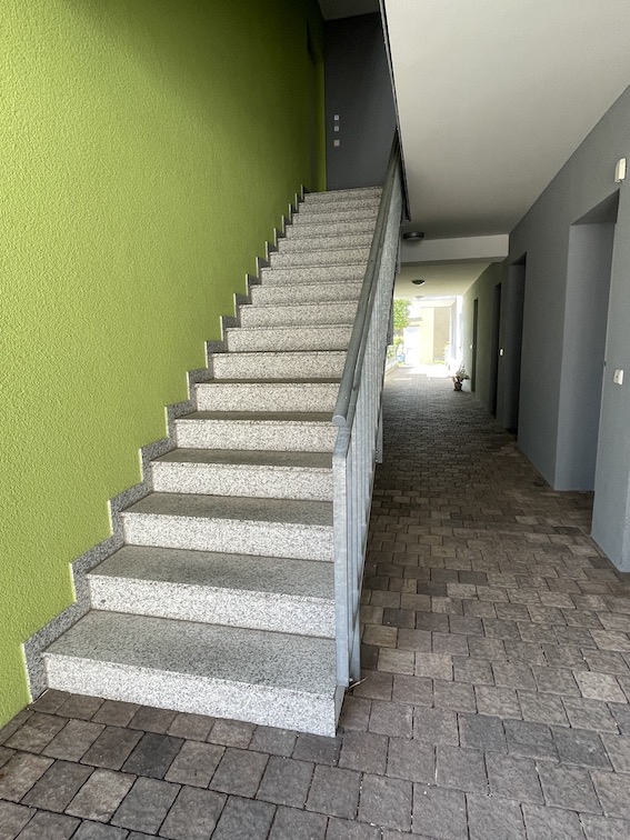 Für ein Wohnhaus mit mehreren Parteien erstellen wir die Beläge für die aussenliegenden Treppen sowie „Laubengänge“.