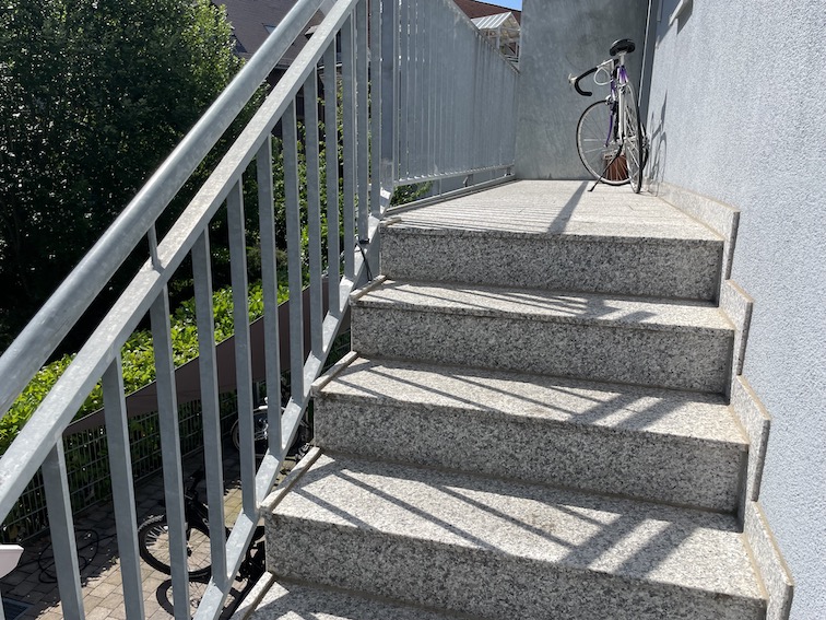 Für ein Wohnhaus mit mehreren Parteien erstellen wir die Beläge für die aussenliegenden Treppen sowie „Laubengänge“.